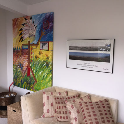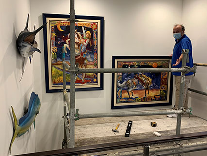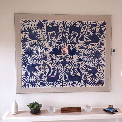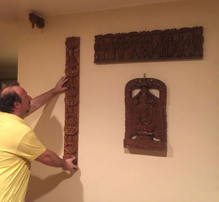 We hang framed art, paintings, mirrors, and three dimensional artworks of all kinds. We have experience hanging safely and securely, while assuring to never cause excessive damage to your walls.